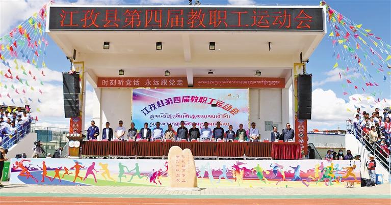 近日,日喀則市江孜縣教育系統(tǒng)舉辦以“奮斗教育路 建功英雄城”為主題的第四屆教職工運動會。本屆教職工運動會比賽項目眾多,競賽類項目有男女100米跑步賽、男女4×100米接力賽;田賽類項目有男女鉛球、男女跳遠(yuǎn)、男女一分鐘跳繩和女子一分鐘踢毽子比賽;傳統(tǒng)賽類項目有吉韌(藏式克郎球)、藏棋(國王與大臣)、男女拔河比賽、秀茲(藏骰一男一女混合);趣味賽類項目有陸地龍舟(男女混合)、旋風(fēng)跑(男女混合)、隔空取物(男女混合)、“乒”盡全力(男女混合);球賽類項目有男子足球和籃球、女子籃球比賽等項目。