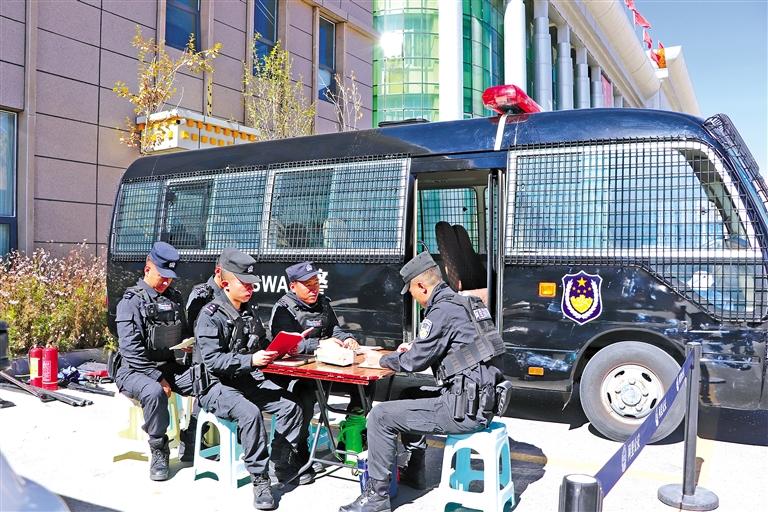 執(zhí)勤民警利用工作間隙開(kāi)展主題教育學(xué)習(xí)研討。記者 達(dá)珍 攝
