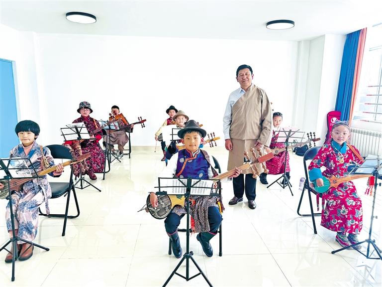 圖為少年宮學(xué)員練習(xí)扎木念(六弦琴)。