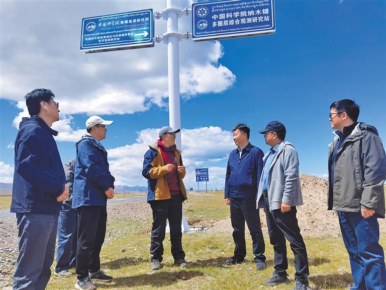 圖為科技部科學普及司工作人員和援藏專家一行,在當雄縣調(diào)研中國科學院納木錯多圈層綜合觀測研究站、國家電網(wǎng)公司西藏羊八井高海拔試驗基地。記者 李洲 攝