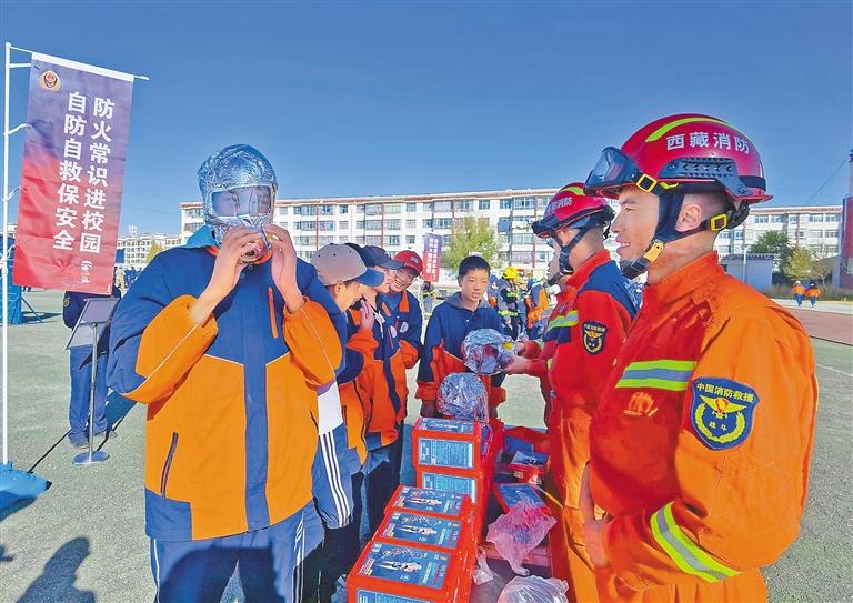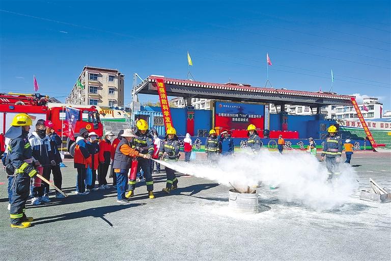 11月5日,2023年日喀則市“119”消防宣傳月活動啟動儀式在日喀則市第三高級中學舉行。日喀則市消防安全委員會成員單位及師生代表共1500余人參加活動?;顒又?,消防技能挑戰(zhàn)、消防科普互動、消防裝備展覽、改革轉隸五周年成果展、消防技能展示等,吸引了大批師生近距離體驗消防、認識消防,進一步筑牢校園消防安全“防火墻”。