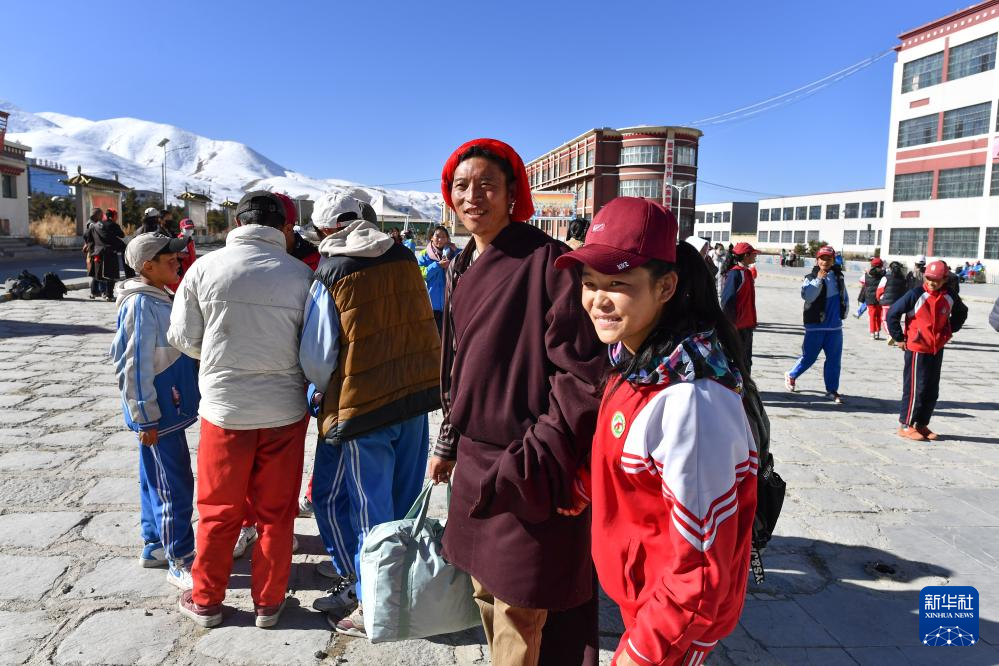 斯曲卓瑪?shù)母赣H來學校接女兒回家(11月15日攝)。新華社記者 晉美多吉 攝