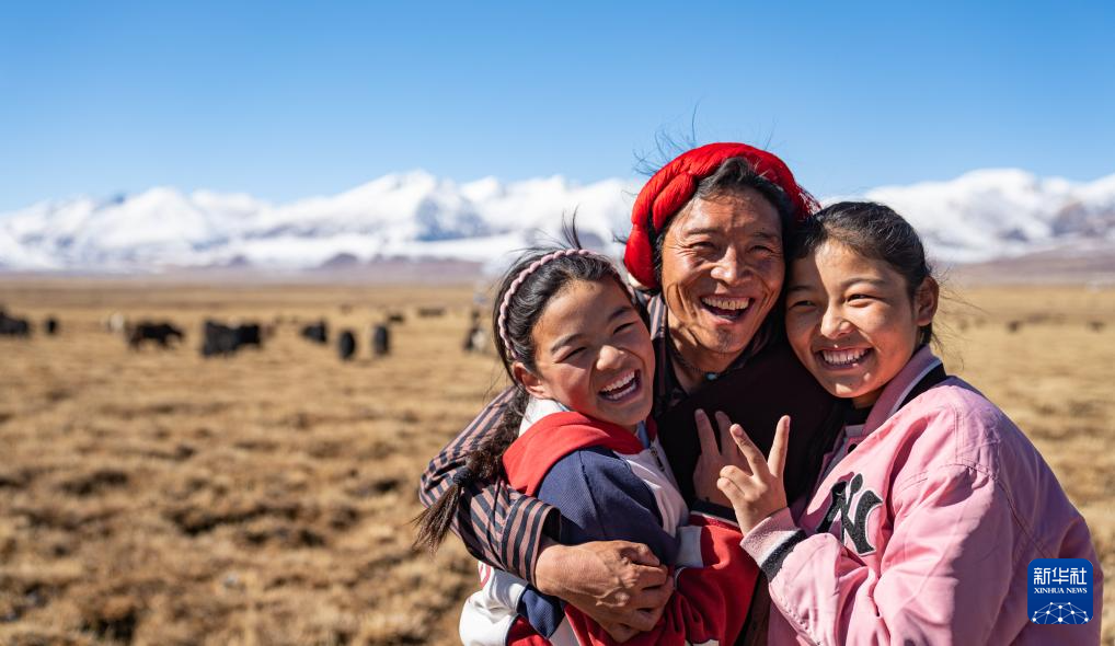 斯曲卓瑪(右)和爸爸、妹妹一起在草原上放牧間隙(11月15日攝)。新華社發(fā)(丁增尼達 攝)
