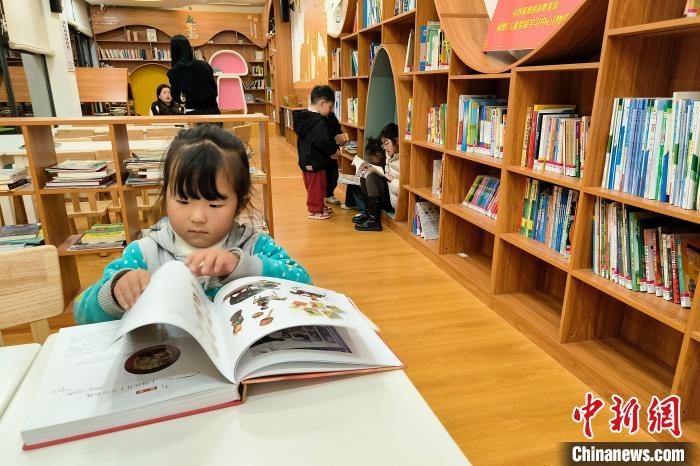 12月22日晚,一位兒童在墨脫縣圖書館內(nèi)翻看書籍。 中新社記者 江飛波 攝