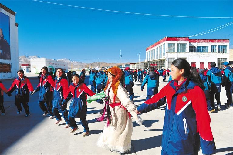 阿里地區(qū)措勤縣藝術(shù)團(tuán)聯(lián)合措勤縣中學(xué)創(chuàng)新非遺傳承模式,共同編排的一套“磁石彈舞”廣播體操,受到措勤縣中學(xué)師生廣泛歡迎。