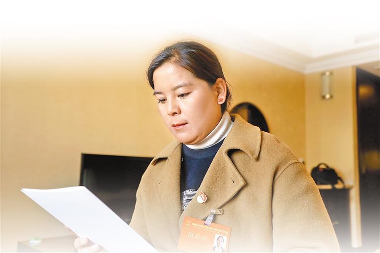 在人大代表駐地見到米瑪普尺時(shí),已是晚上8點(diǎn)多。與去年第一次參加自治區(qū)兩會(huì)時(shí)的緊張心情不同,經(jīng)過一年錘煉的她多了幾分從容與期待。