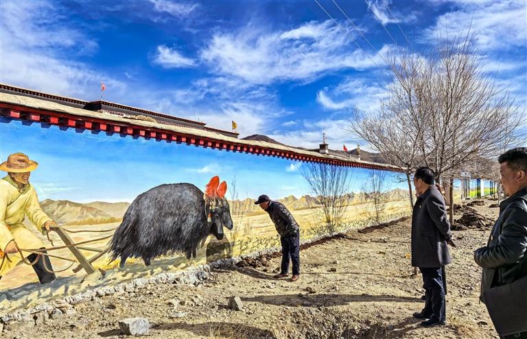 “我們將高原農(nóng)耕文化、民族團結故事、道路安全常識等內容繪制在墻上,村民進出都可以看到,潛移默化中會起到宣傳作用。在墻上繪制的精美風景畫,也給鄉(xiāng)村增添了一道美景,弘揚了文明健康、積極向上的風氣。”桑珠孜區(qū)委宣傳部相關負責人說。