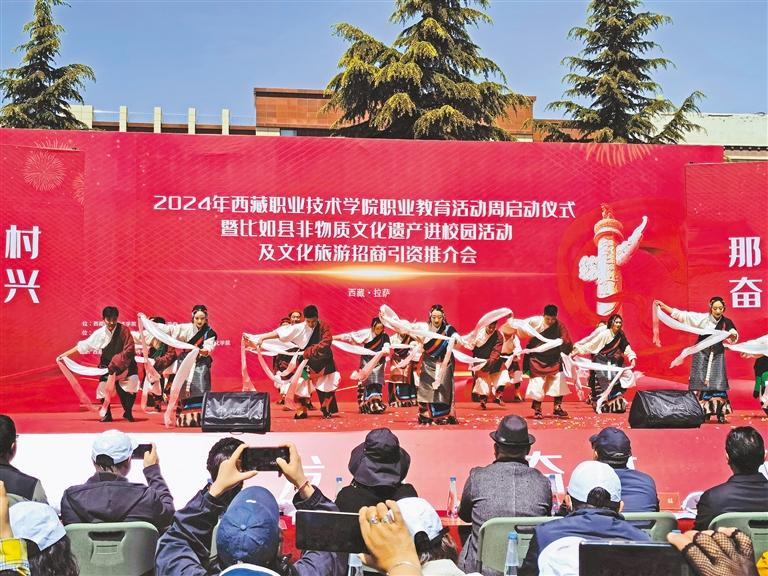 日前,2024年西藏職業(yè)技術(shù)學(xué)院職業(yè)教育活動周在拉薩啟動。那曲市比如縣非物質(zhì)文化遺產(chǎn)走進校園,激發(fā)了學(xué)生和老師對傳統(tǒng)文化濃厚的興趣。