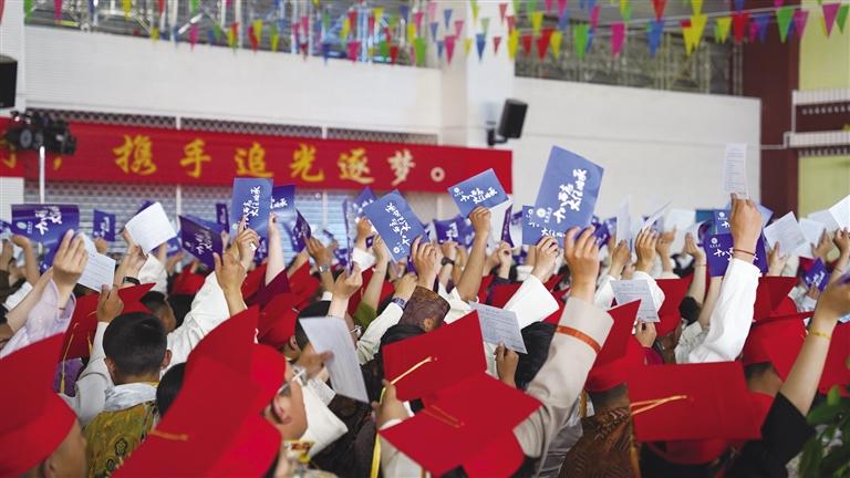 5月29日下午,拉薩市第四高級中學(xué)舉行2024屆高三年級成人禮暨畢業(yè)典禮。750余名學(xué)生身著盛裝,頭戴紅色成人禮帽,與老師、家長共赴這場華麗璀璨的青春盛宴。