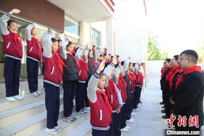 圖為學(xué)生們正在為法院干警們敬少先隊(duì)隊(duì)禮。倫珠澤仁攝