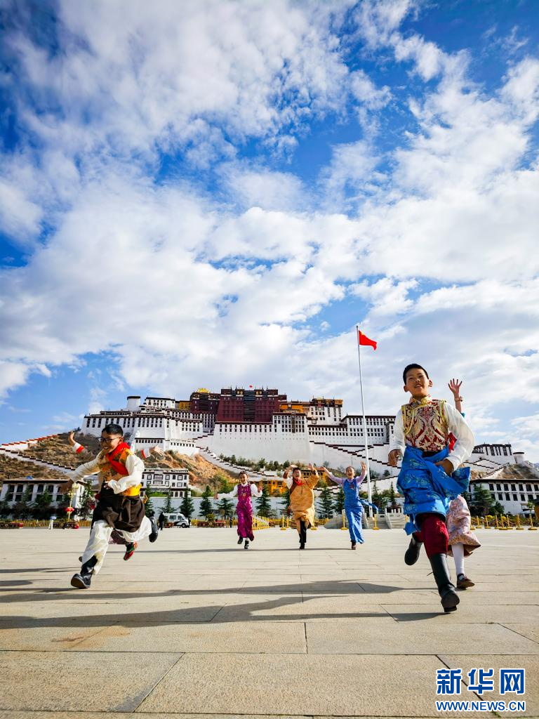6月1日,小朋友們在布達拉宮廣場歡慶“六一”國際兒童節(jié)。新華網(wǎng) 旦增努布 攝