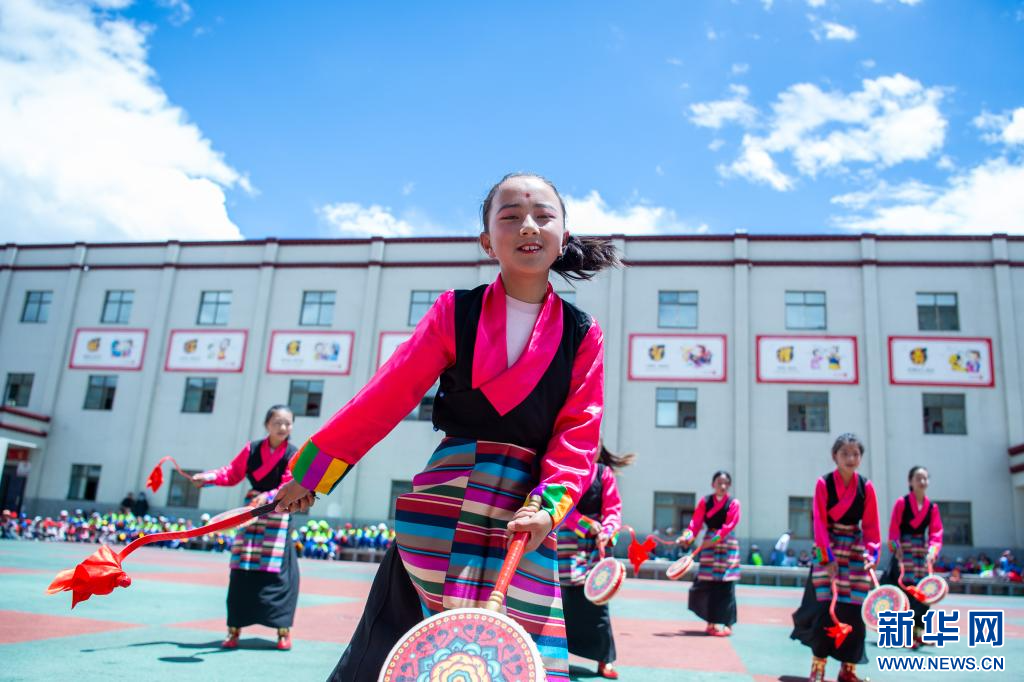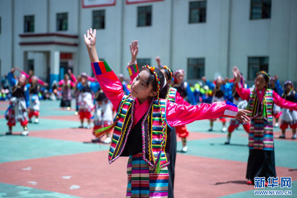 6月21日,乃東區(qū)亞堆鄉(xiāng)小學(xué)的學(xué)生在表演節(jié)目。新華網(wǎng) 旦增努布 攝