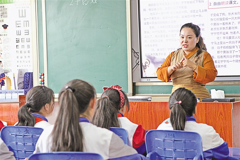 在昌都市特殊學(xué)校的課堂上,有一位老師以她獨(dú)特的方式詮釋著教育的意義。她就是澤巴卓嘎,一位被孩子們親切稱為“心靈引路人”的特殊學(xué)校教師。課堂上,她像一位舞者,優(yōu)雅靈動(dòng),用手語(yǔ)與聽(tīng)障的孩子們交流,仿佛在傳遞一曲無(wú)聲的樂(lè)章。