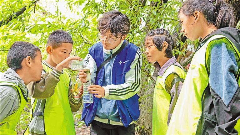 拉薩市未成年人救助保護(hù)中心社工幫助孩子們收集標(biāo)本。