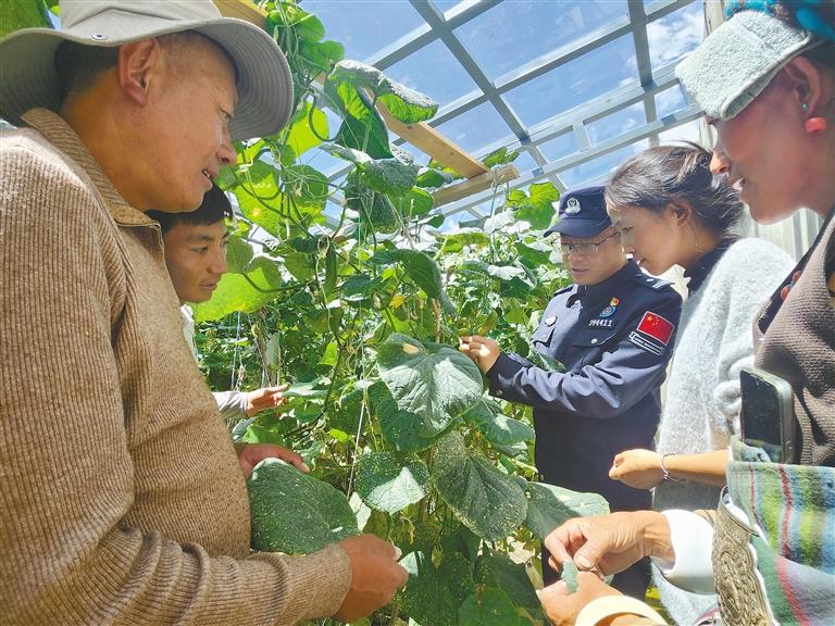 次仁加措與所里民警不僅定期給曲宗村的老人送去蔬菜,還會邀請群眾到派出所的溫室大棚參觀學(xué)習(xí),毫無保留地傳授溫室大棚種植技術(shù),播種綠的希望,讓更多人能品嘗到新鮮的蔬菜水果。