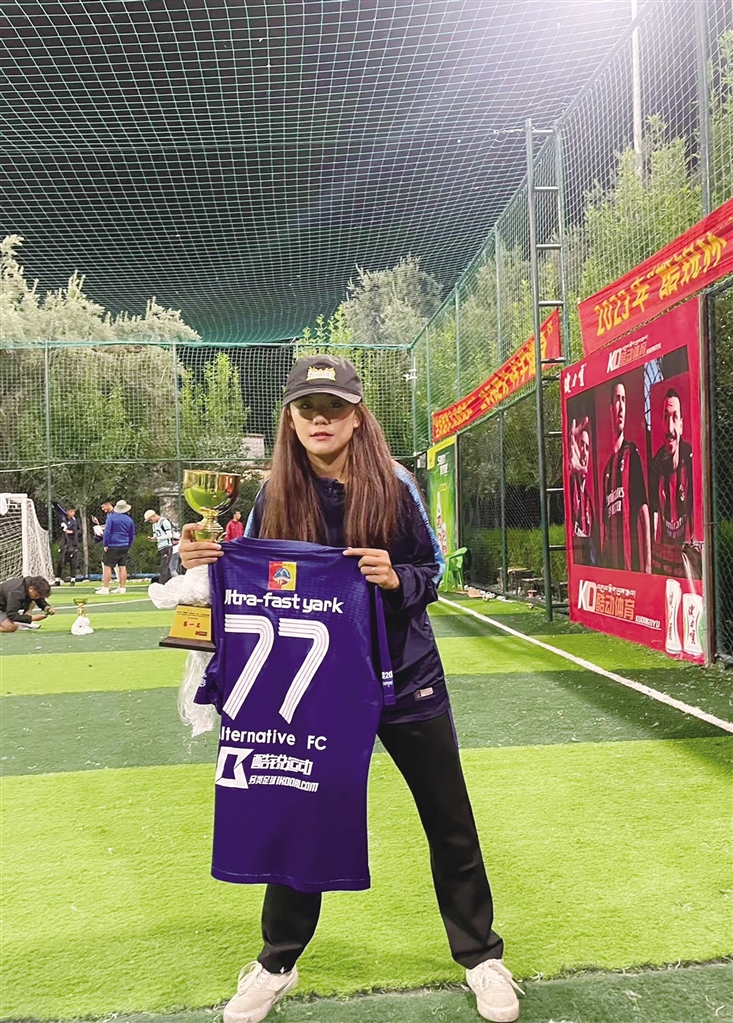 而最能證明她們訓練成果的就是足球聯(lián)賽?!。玻埃玻衬辍坝卤笨徜J運動拉薩業(yè)余足球5人制(女子組)比賽、第二屆“亞克杯”女子5人制交流賽在拉薩開賽,這也是西藏少有的女足賽事。米央以拉薩另類女子足球隊隊員身份參賽,盡管米央是隊內(nèi)年紀最小的成員,但她的能力絲毫不遜于任何人。米央所在的這支由高中生、大學生等組成的隊伍,經(jīng)過10場比賽,拼盡全力最終奪得冠軍。“每當足球在我腳下滾動飛躍,每當我奔跑在綠茵場上,那種肆意和快樂讓我堅定我的選擇,我的夢想是踢進中國國家女子足球隊。”米央說。雖然她與夢想還有距離,但內(nèi)心那股熊熊燃燒的信念力量,成為她刻苦訓練的“定心丸”。