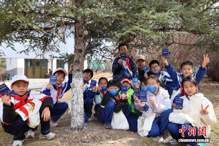 3月12日,青海西寧,“我在青海種下‘生命樹’”研學(xué)活動吸引青少年參與?;顒油ㄟ^科普宣講、樹木守護(hù)牌制作、林地清理等護(hù)綠實踐,增強(qiáng)生態(tài)意識,帶動全民愛綠護(hù)綠。圖為學(xué)生手持樹木領(lǐng)養(yǎng)證合影。中新社記者 薛蒂 攝