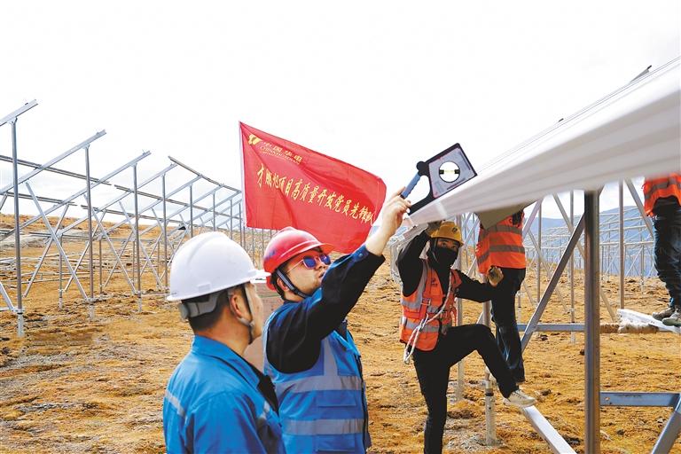 圖為華電西藏才朋光儲二期項目黨員先鋒隊的黨員們在施工現(xiàn)場進行維護作業(yè)。 記者 袁海霞 鄭璐 攝