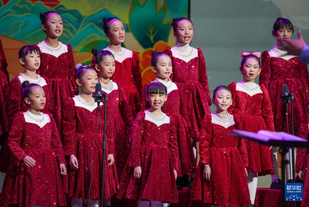 12月28日拍攝的西藏首屆少兒新年音樂會暨西藏珠峰少年合唱團2024年匯報演出現(xiàn)場。新華社記者 晉美多吉 攝