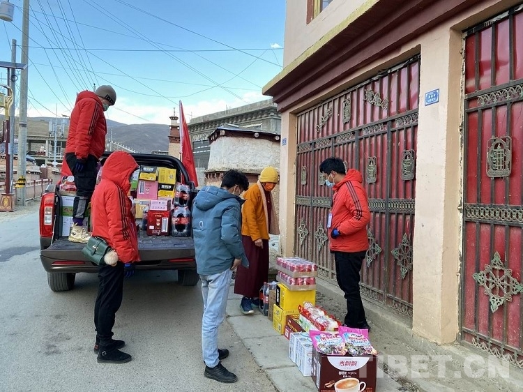 圖為理塘團(tuán)縣委“青年突擊隊(duì)”風(fēng)雪中免費(fèi)跑腿為抗疫“宅家”群眾送物資上門(mén)