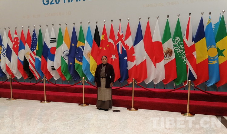 圖為2019年12月瓊結(jié)縣政協(xié)組織政協(xié)委員到杭州視察工作時(shí),桑吉在G20峰會(huì)杭州主會(huì)場(chǎng)留影。