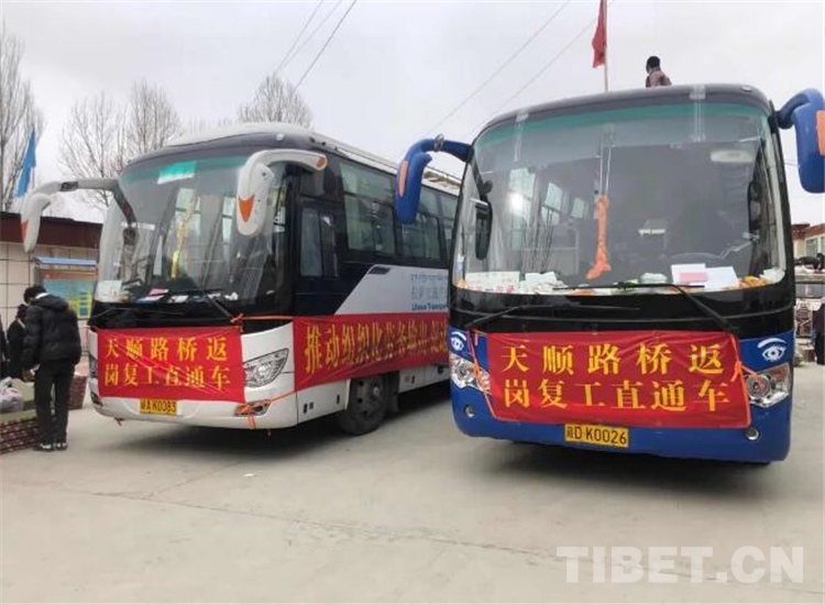 3月14日,西藏自治區(qū)日喀則市江孜縣首批115名外出務(wù)工人員在卡堆鄉(xiāng)集合,統(tǒng)一出發(fā)。在疫情防控特殊時期,江孜縣對首批前往天順路橋建設(shè)項目組施工地的115名務(wù)工人員,統(tǒng)一安排9輛運(yùn)輸車開啟“一站式”免費(fèi)直達(dá)運(yùn)輸服務(wù)。衛(wèi)生防疫工作人員對專送車輛提前進(jìn)行消毒,并為務(wù)工人員進(jìn)行身體健康檢查,統(tǒng)一配發(fā)防護(hù)口罩。