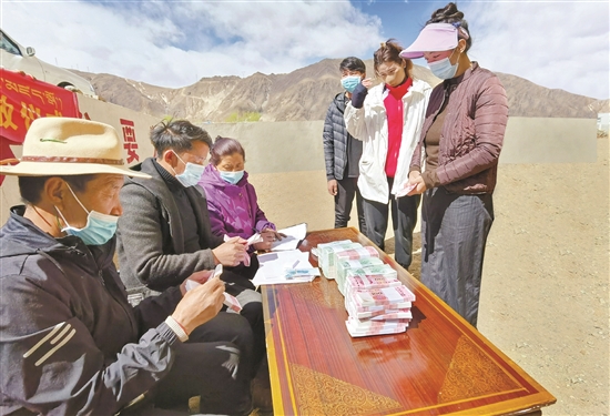 圖為康樂(lè)小區(qū)易地扶貧搬遷群眾勞務(wù)費(fèi)發(fā)放現(xiàn)場(chǎng)。 拉薩融媒記者 喬 梁攝