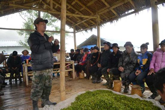 雨越下越大,格桑把村民們叫到茶葉基地旁邊的茅草屋避雨,借此機會,他又用門巴語講解了民族團(tuán)結(jié)、掃黑除惡、醫(yī)療報銷等方面的內(nèi)容,這中間還穿插一些漢語的講解。