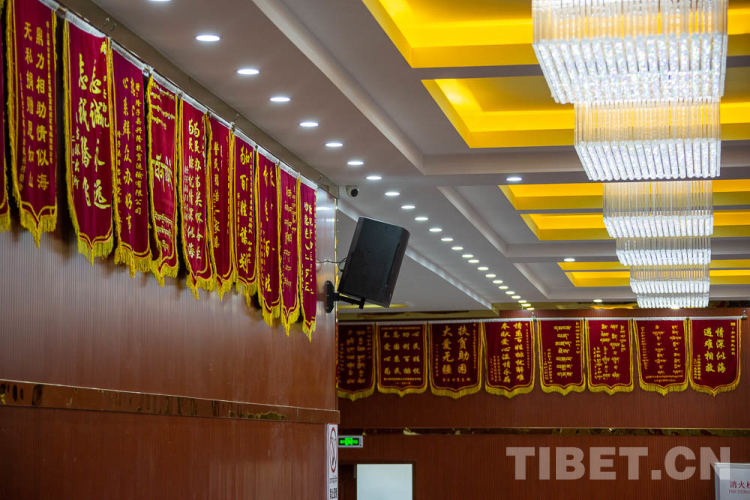 圖為隆子縣日當鎮(zhèn)宗那建筑有限公司和興隆扶貧運輸公司會議室里墻上掛滿的錦旗 攝影:趙耀