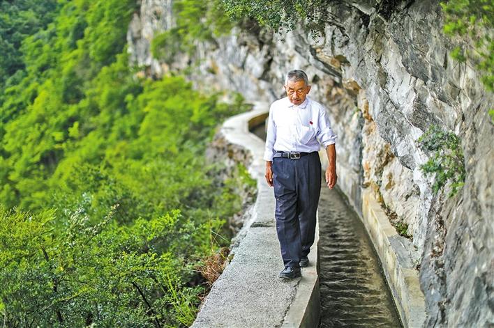 村民們親切地把水渠稱作“大發(fā)渠”。正是在老支書(shū)黃大發(fā)的帶領(lǐng)下,村民們鋼釬鑿、風(fēng)鉆敲,硬是在峭壁懸崖間,挖出一條近10公里的“天渠”。