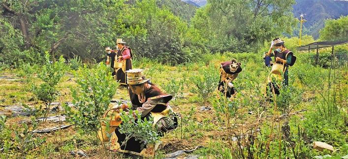圖為卡達(dá)村群眾在藍(lán)莓種植基地采摘藍(lán)莓。通訊員 張淑萍 攝