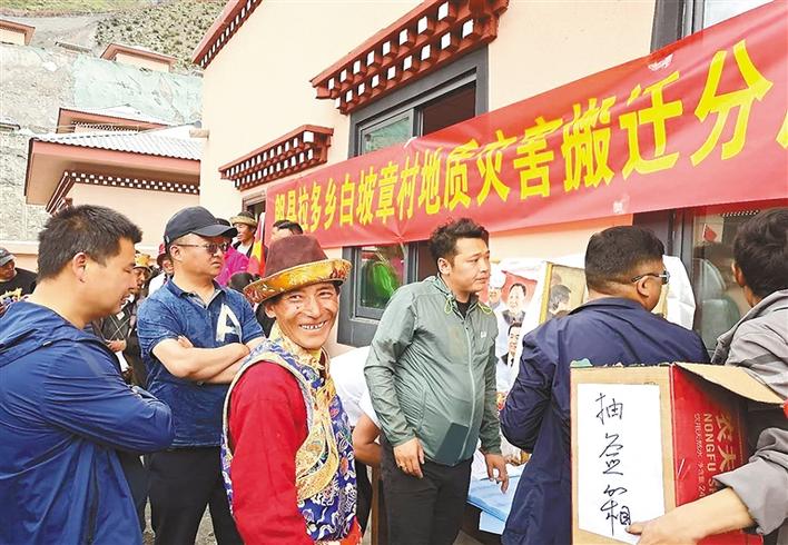 拉多鄉(xiāng)黨委書(shū)記蔣云海介紹,今天舉行分房?jī)x式,先讓白坡章村群眾拿到新房,我們計(jì)劃從7月底開(kāi)始,安全有序組織群眾搬遷入住。在林芝市扶貧辦駐村工作隊(duì)的努力下,將爭(zhēng)取到的援藏資金用于搬遷群眾購(gòu)置衛(wèi)浴和家具家電等設(shè)施,讓他們住得安心、住的放心。此外,在實(shí)施搬遷過(guò)程中,我們將按照“搬得出、穩(wěn)得住、能致富”的原則,不斷完善后續(xù)扶持政策,以黨建為引領(lǐng),推動(dòng)山羊養(yǎng)殖產(chǎn)業(yè)發(fā)展,既要讓他們住進(jìn)好房子,又要過(guò)上好日子。