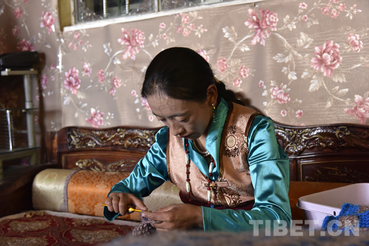 圖為西藏自治區(qū)阿里地區(qū)改則縣圓夢新居易地扶貧搬遷點(diǎn)居民扎西頓珠的妻子索南措姆在編織 攝影:王媛媛