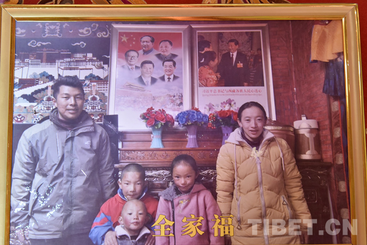 圖為西藏自治區(qū)阿里地區(qū)改則縣圓夢新居易地扶貧搬遷點(diǎn)居民扎西頓珠一家全家福 翻拍:王媛媛