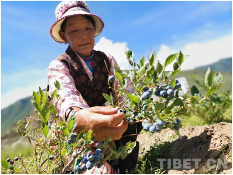 嘎瑪吉塘村村民白珍拉姆正忙著和合作社成員一起采摘藍(lán)莓鮮果。一顆顆藍(lán)莓在高原充足的陽光沐浴下,顆粒飽滿,口感香甜??粗鴴鞚M枝頭的藍(lán)莓,嘎瑪吉塘村主任、駐村工作隊隊員和鄉(xiāng)村振興干部的臉上洋溢著笑容,“藍(lán)莓采摘季到了,看來今年又是一個豐收年?!?/p>