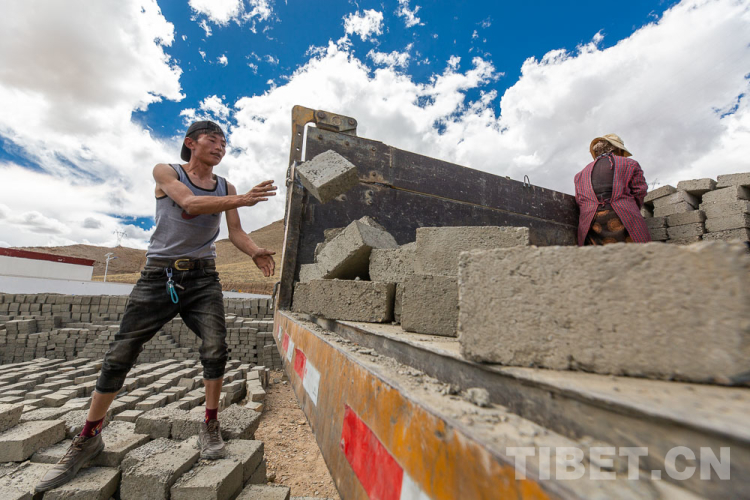 圖為山南市隆子縣日當鎮(zhèn)加洛村村民桑珠的女婿平措(圖左)在磚廠運磚 攝影:趙耀
