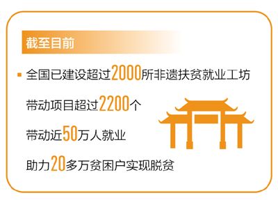 數據顯示,截至目前,各地非遺扶貧就業(yè)工坊已帶動項目超過2200個,帶動近50萬人就業(yè),助力20多萬貧困戶實現脫貧。