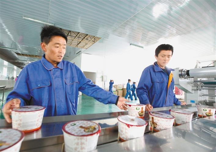 圖為日喀則市白朗縣旺達食品公司工作人員正在現(xiàn)代化的生產(chǎn)線上作業(yè)。記者 次旺 唐斌 攝