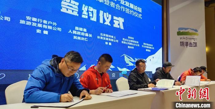 圖為當(dāng)雄縣官方與30余家戶外俱樂(lè)部、文化賽事機(jī)構(gòu)和企業(yè)單位代表進(jìn)行合作簽約。 貢桑拉姆 攝