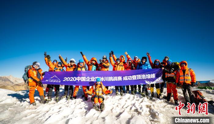 圖為第三極攀登者2020中國(guó)企業(yè)家冰川挑戰(zhàn)賽參賽者成功登頂洛堆峰?!‘?dāng)雄縣委宣傳部供圖