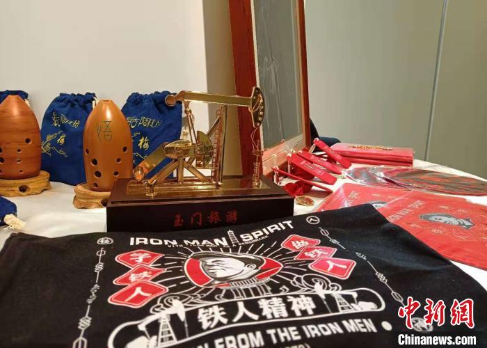 圖為“鐵人”王進喜故里甘肅玉門以“鐵人精神”制作的文創(chuàng)產(chǎn)品展示?!堟?攝