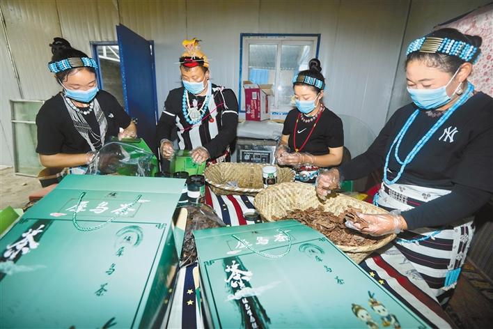 圖為珞隅綠色農(nóng)產(chǎn)品合作社員工正在包裝犀鳥茶。記者 唐斌 洛桑 攝