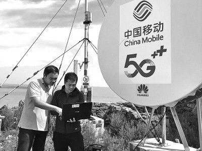 在江蘇灌云縣開山島,中國移動(dòng)工作人員測(cè)試5G信號(hào)。新華社發(fā)