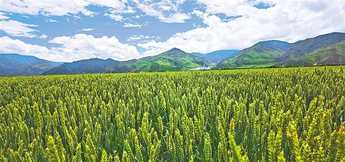 圖為拉薩市達(dá)孜區(qū)境內(nèi)長勢喜人的冬小麥。記者 裴聰 格桑倫珠 攝