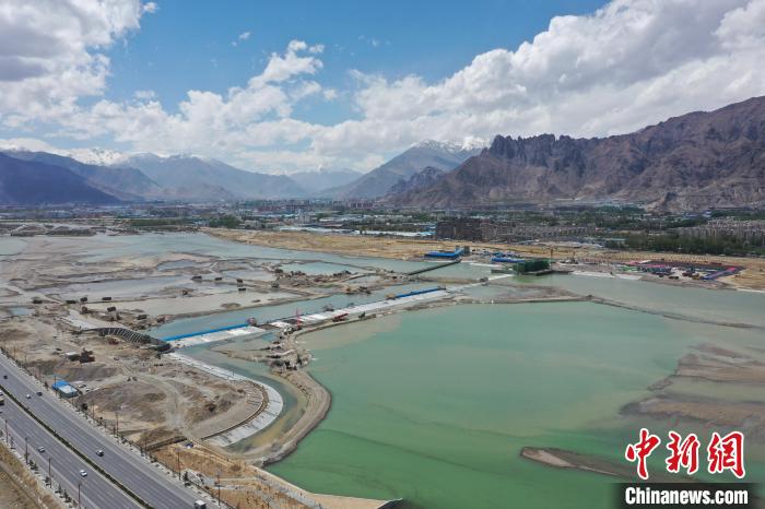 圖為西藏拉薩河河勢控導(dǎo)工程(濱河花園段)成功下閘蓄水 水電基礎(chǔ)局 供圖