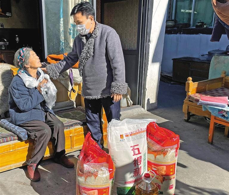 圖為山南市人大常委會工作人員深入澤當社區(qū)困難群眾家中慰問。記者 巴桑旺姆 攝