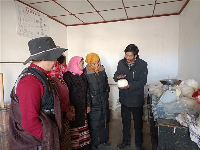 馬村草場遼闊,有著養(yǎng)殖犏牛等牲畜的良好自然條件。以前該村由于一直依靠傳統(tǒng)方式養(yǎng)牛,規(guī)模小、科技含量低、品種老化、產(chǎn)業(yè)帶動力不明顯,一直處于“家家養(yǎng)牛家家窮”的狀態(tài)。2013年,在拉薩市委組織部(駐村工作隊)的幫扶下,投入90萬元成立了堆龍德慶區(qū)馬鎮(zhèn)馬村平措犏牛養(yǎng)殖合作社。接下來的幾年不斷擴大養(yǎng)殖規(guī)模和提高養(yǎng)殖經(jīng)營水平,建成了馬村高原特色犏牛養(yǎng)殖及乳制品加工銷售一體化養(yǎng)殖基地,其乳制品深受市場的歡迎。目前,合作社有犏牛100多頭,帶動5人就業(yè),2019年起除了與其他村集體經(jīng)濟收入一起給常住戶分紅外,每年向本村建檔立卡貧困戶分紅。“我們村經(jīng)過發(fā)展,成立了犏牛養(yǎng)殖合作社,合作社的收入一年比一年好。今年,村集體經(jīng)濟為我們脫貧戶每戶分紅2900元,我們特別開心。今后也希望能更多地參與到村集體發(fā)展中,學好技術(shù),讓家庭條件越來越好?!贝迕衤迳8吲d地說。