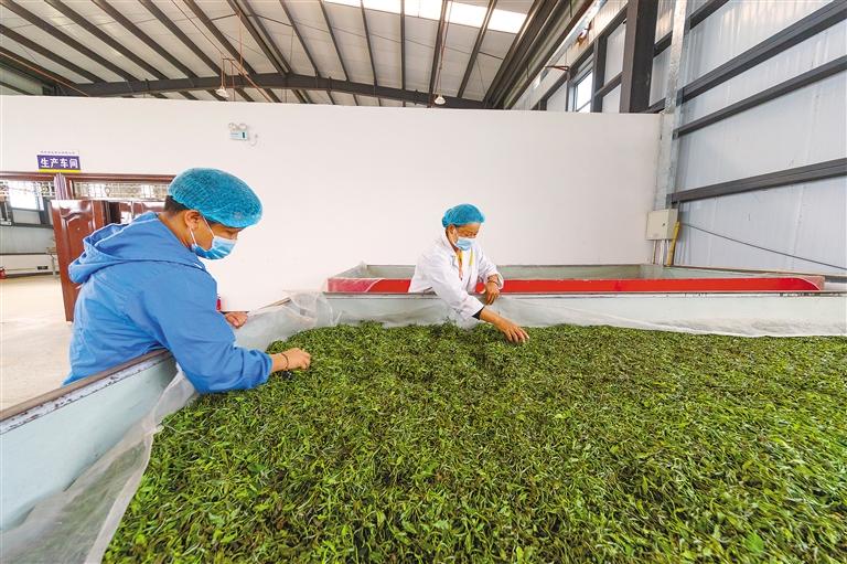 圖為林芝市墨脫縣林芝墨脫茶業(yè)有限公司員工在加工生產(chǎn)當(dāng)日采摘的茶葉。記者 格桑吉美 攝