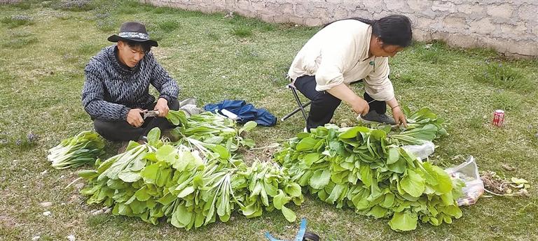 圖為龍仁鄉(xiāng)龍仁村蔬菜種植戶在打理剛采摘的蔬菜。記者 格桑倫珠 裴聰 攝