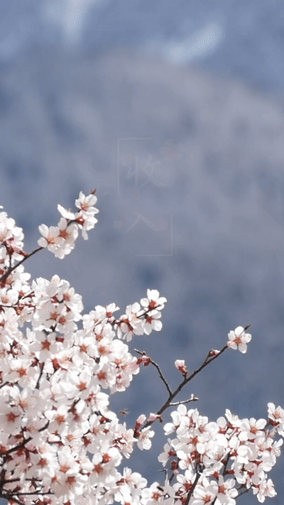 成片的桃花林綿延至河谷山川